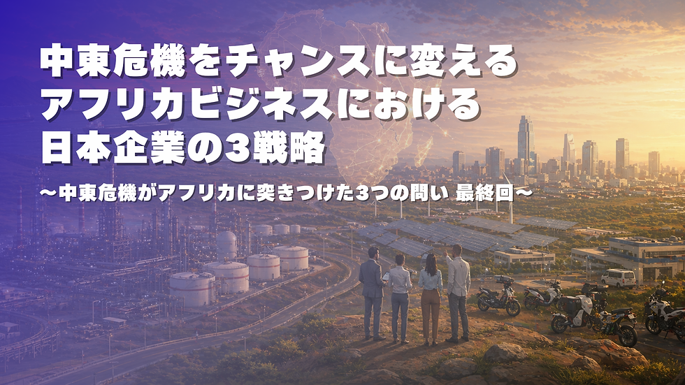 中東危機は、アフリカを「輸入依存モデル」から「域内完結モデル」へと押し出す構造的な地殻変動を加速させているといえます。